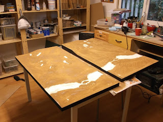 The river is coated in acrylic paste and smoothed to a semi finish.