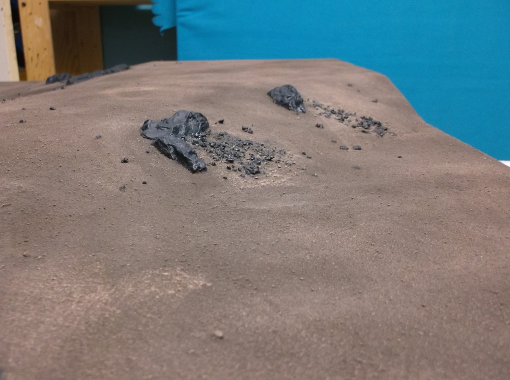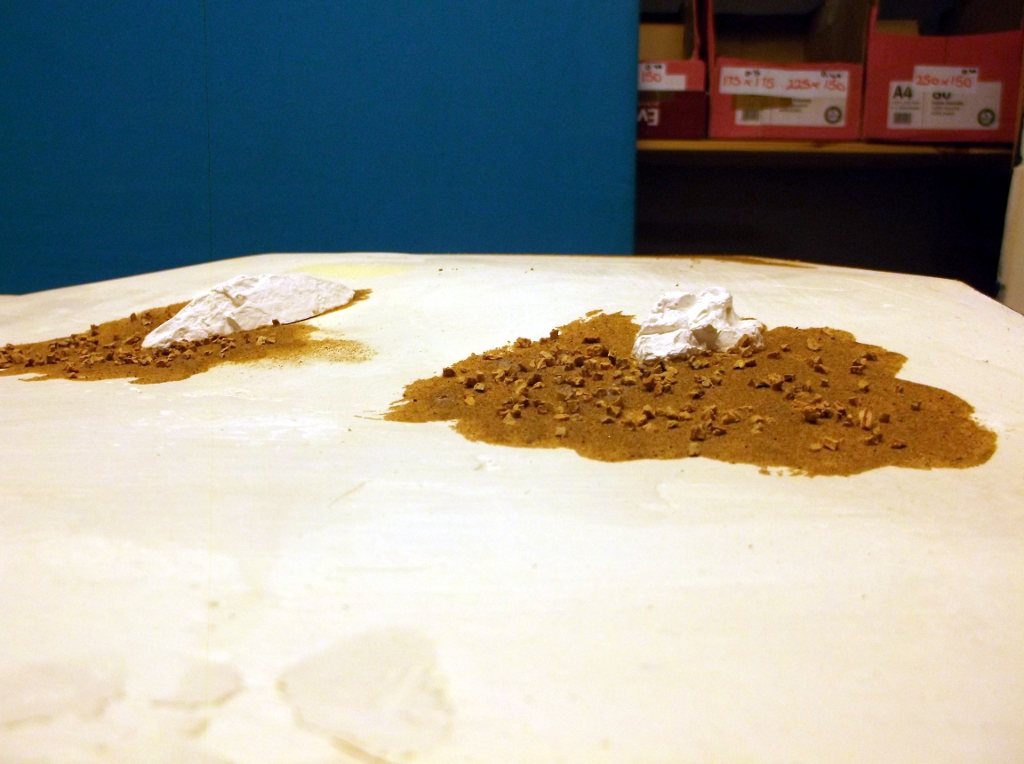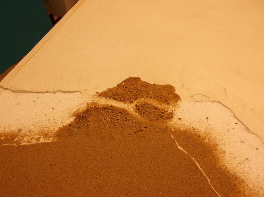 The coarse textures are added first then the finer sand spread over the top, working as quickly as possible but without rushing.