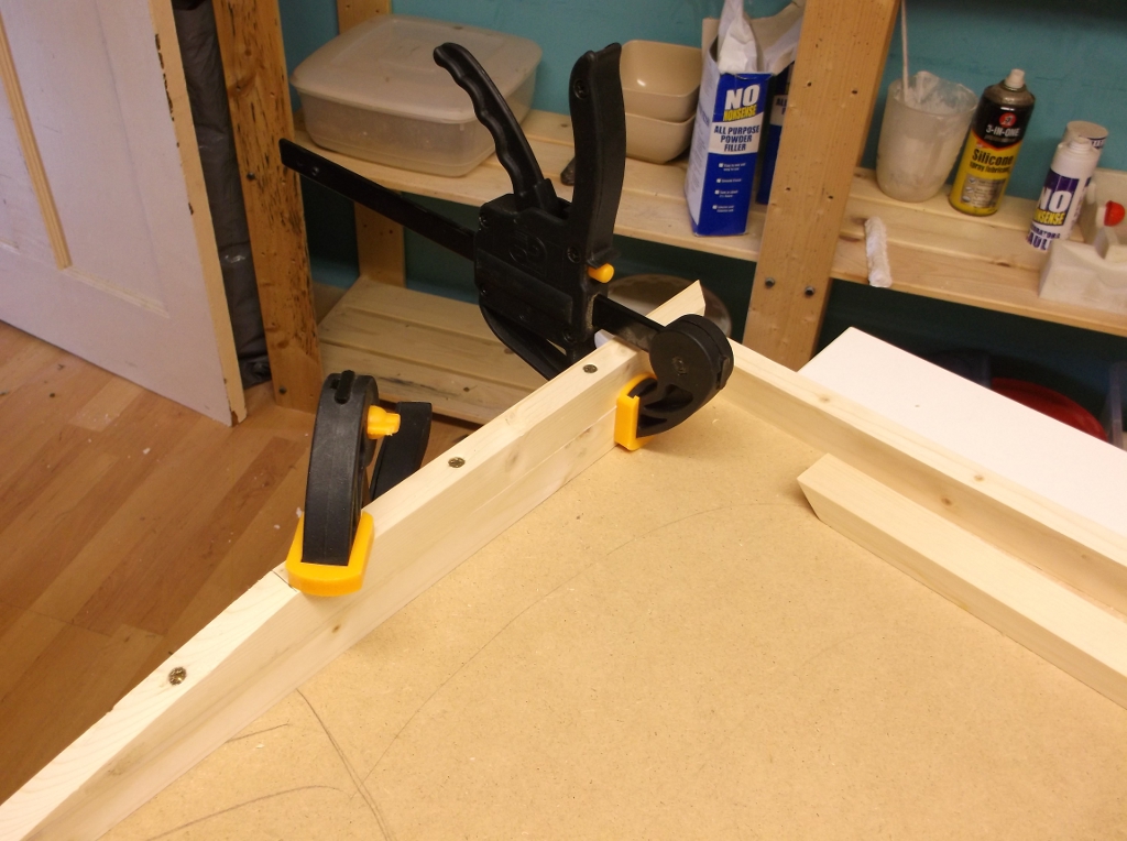 Once the initial perimeter was built it was time to increase the perimeter height at certain points to allow me to build up the terrain features. Again Clamps, Glue and screws are used to fix these in place.