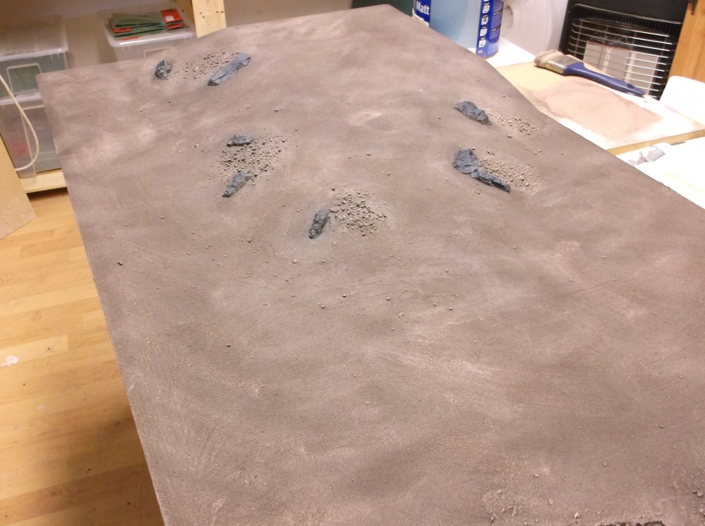 I also put a base coat on the rock features and set the boards aside to dry, in good weather 4 hours is normal in this case it took 12 hours for it to fully dry.